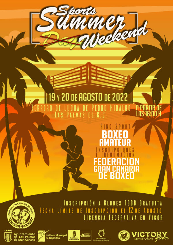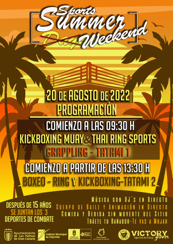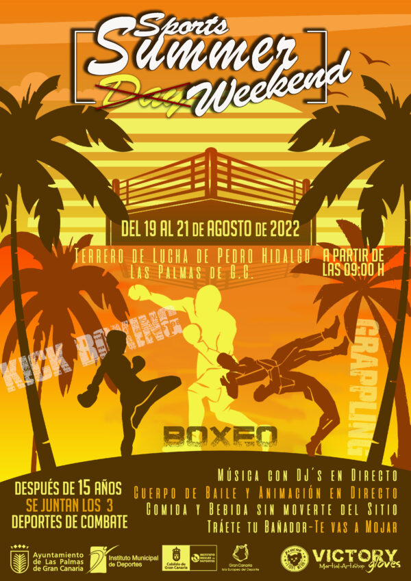 Partiendo de esto, y sabiendo que la capital Gran Canaria se ha convertido en epicentro nacional de los deportes de combate, es por lo que se ha dado nacimiento a este nuevo evento denominado SPORTS SUMMER WEEKENDpara dar aún más, si se puede, visibilidad a la Capital, a Canarias y a sus deportistas, siendo también la cuna de grandes deportistas de élite y profesionales de todas las modalidades deportivas, siendo parte de dicho mérito la ayudas y medios que ofrecen las instituciones Gran Canarias tales como el Instituto Insular de Deportes del Ayuntamiento de Las Palmas de Gran Canaria y el Instituto Insular de Deportes del Cabildo de Gran Canaria.