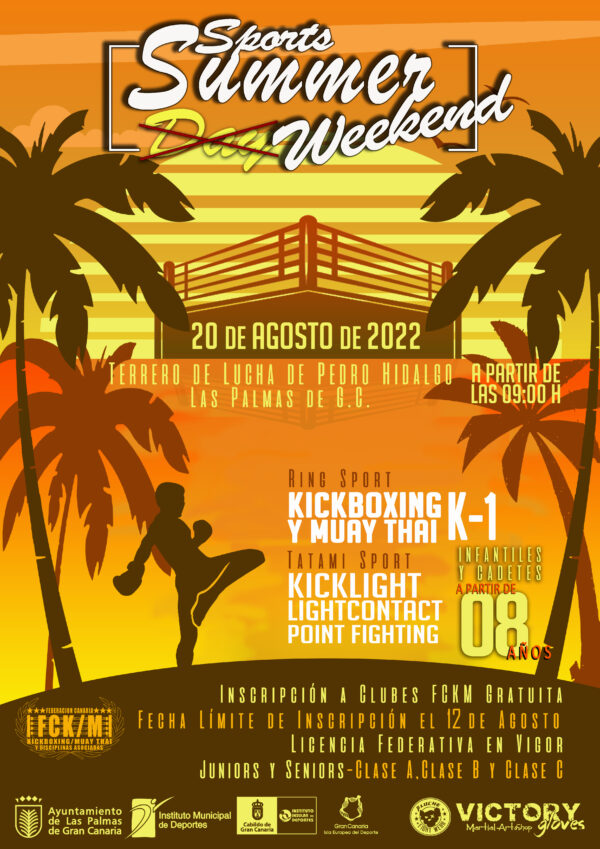 Tras más de 15 años de separación, tras muchas negociaciones entre Federaciones Autonómicas, con el fin de promover el deporte base y devolver, o mejor dicho, mantener el estatus recuperado de estos deportes, ya que se vuelven a encontrar en auge contando con gran afluencia de público y de practicantes. Eso se debe a la gran labor de las Federaciones que luchan día a día porque así sea, con el único fin de que el deporte sea accesible para todos, y con ello, continuar con el legado de los grandes valores que conlleva su práctica. La Federación Canaria de Kickboxing y Muaythai, la Federación Gran Canaria de Boxeo y la Federación Canaria de Luchas y D.D.A.A. se unen para participar en el SPORTS SUMMER WEEKEND colaborando en la organización de sus modalidades en este Festival del deporte, pudiendo contar ya con combates de Kickboxing en las modalidades de Low Kick, K-1, Kick Light y Light Contact en todas sus categorías, desde Benjamín hasta Seniors; combates de Boxeo también en todas sus categorías de edad incluyendo la clase élite y combates de Lucha en la modalidad de Grappling,en todas las categorías de peso y edad también, no descartando mas modalidades deportivas y especialidades de combate en un futuro.